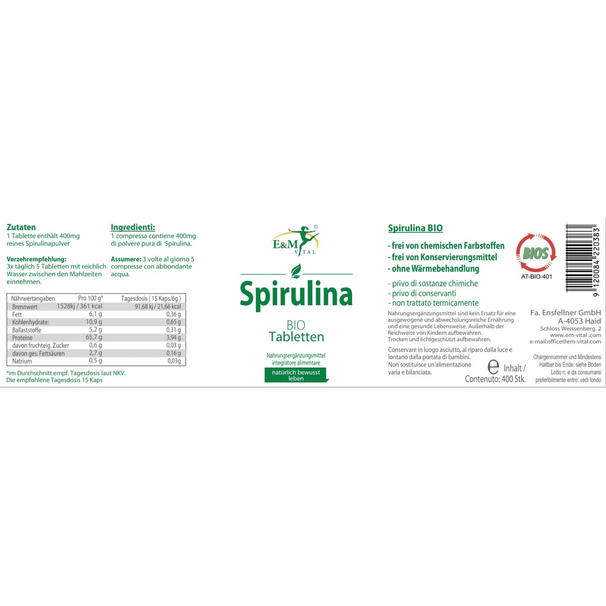 E&M BIO Spirulina Tabs – 400 Stück